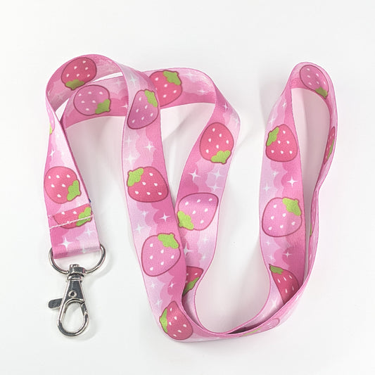 Strawberry Lanyard Kawaii Pink with Silver Lobster Clasp | Cute Lanyard | Cute Key Holder | by Tawny Illustrations