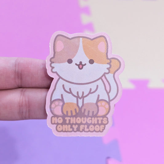 No Thoughts Only Floof Calico Cat Holographic Sticker