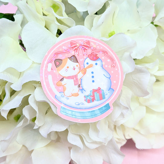Holiday Snow Globe Snow Man Holographic Kitty Sticker