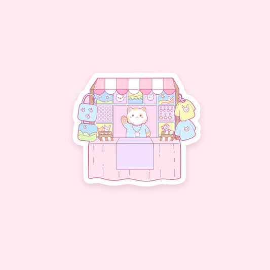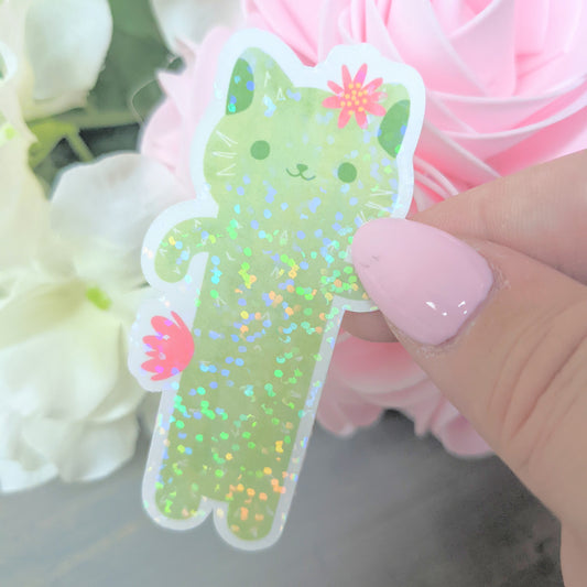 Kitty Market Vendor Small Business Artist ~ Holographic Waterproof Die Cut Sticker ~ Tawny Illustrations