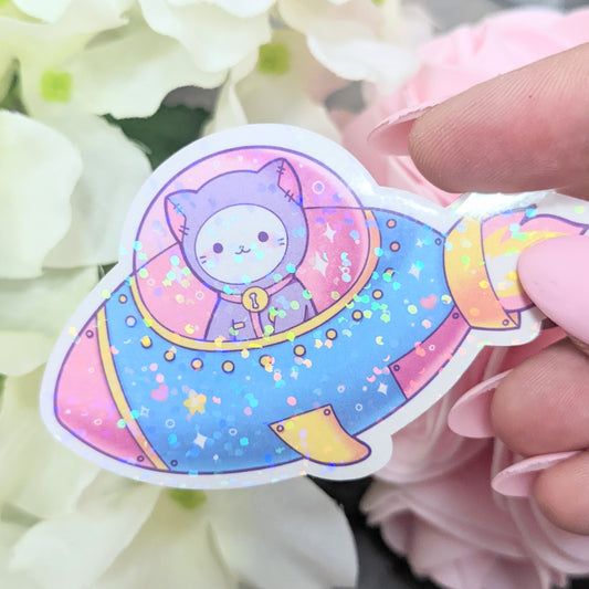 Marsh the Astronaut Cat Spaceship Holographic Sticker