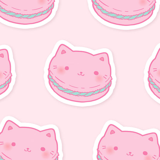 Macaroon Kitty ~ Holographic Pastel Kawaii Waterproof Die Cut Sticker ~ Tawny Illustrations
