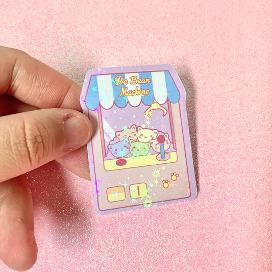Kitty Claw Machine Arcade ~ Holographic Waterproof Die Cut Sticker ~ Tawny Illustrations