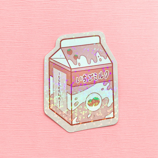 Strawberry Milk ~ Waterproof Die Cut Sticker ~ Holographic Kawaii Pastel Vinyl Sticker