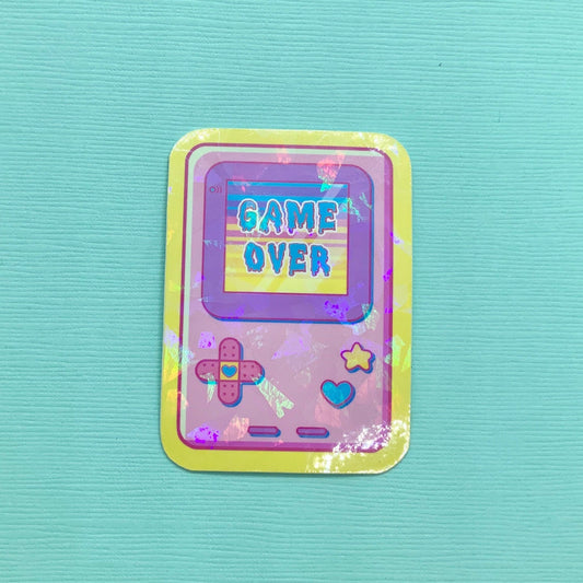 Handheld Game Boy ~ Holographic Waterproof Die Cut Sticker ~ Tawny Illustrations