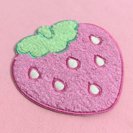 Fuzzy Soft Chenille Strawberry Iron On Patch