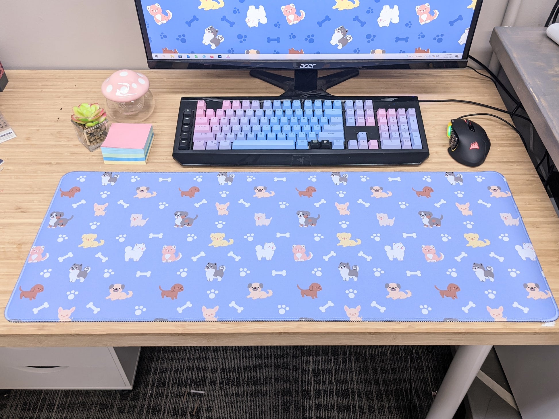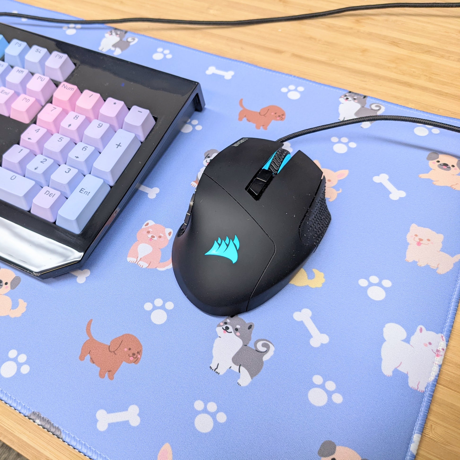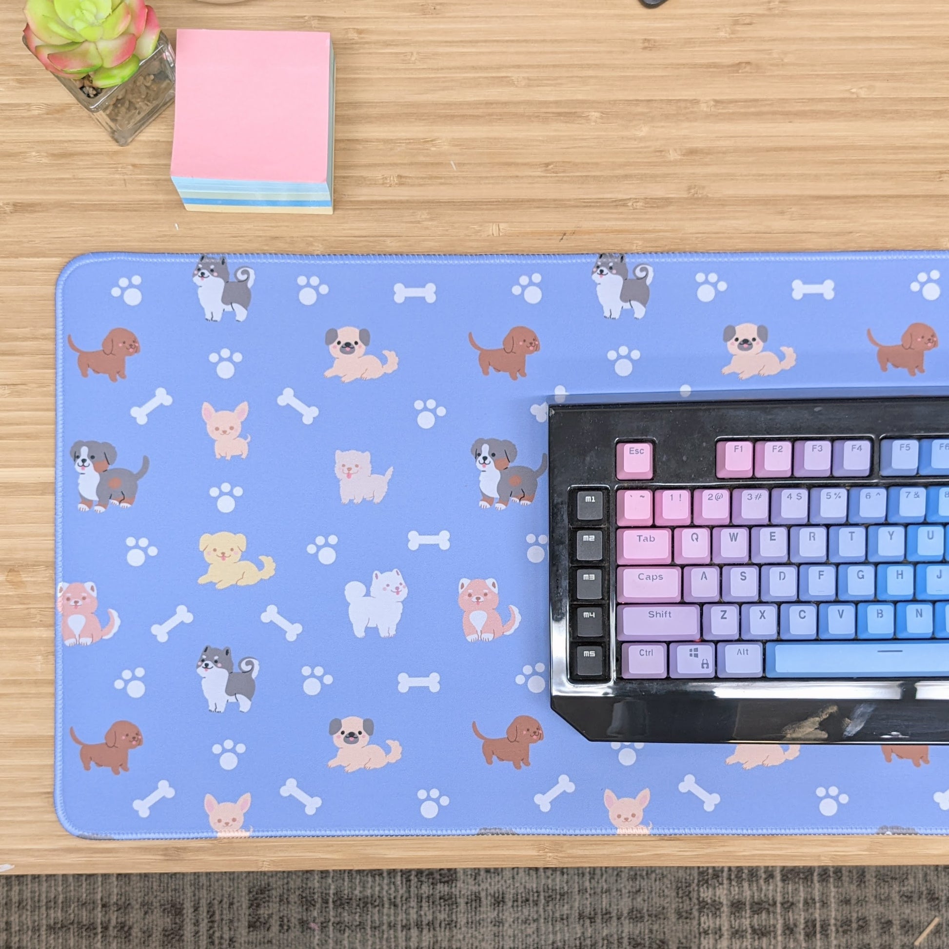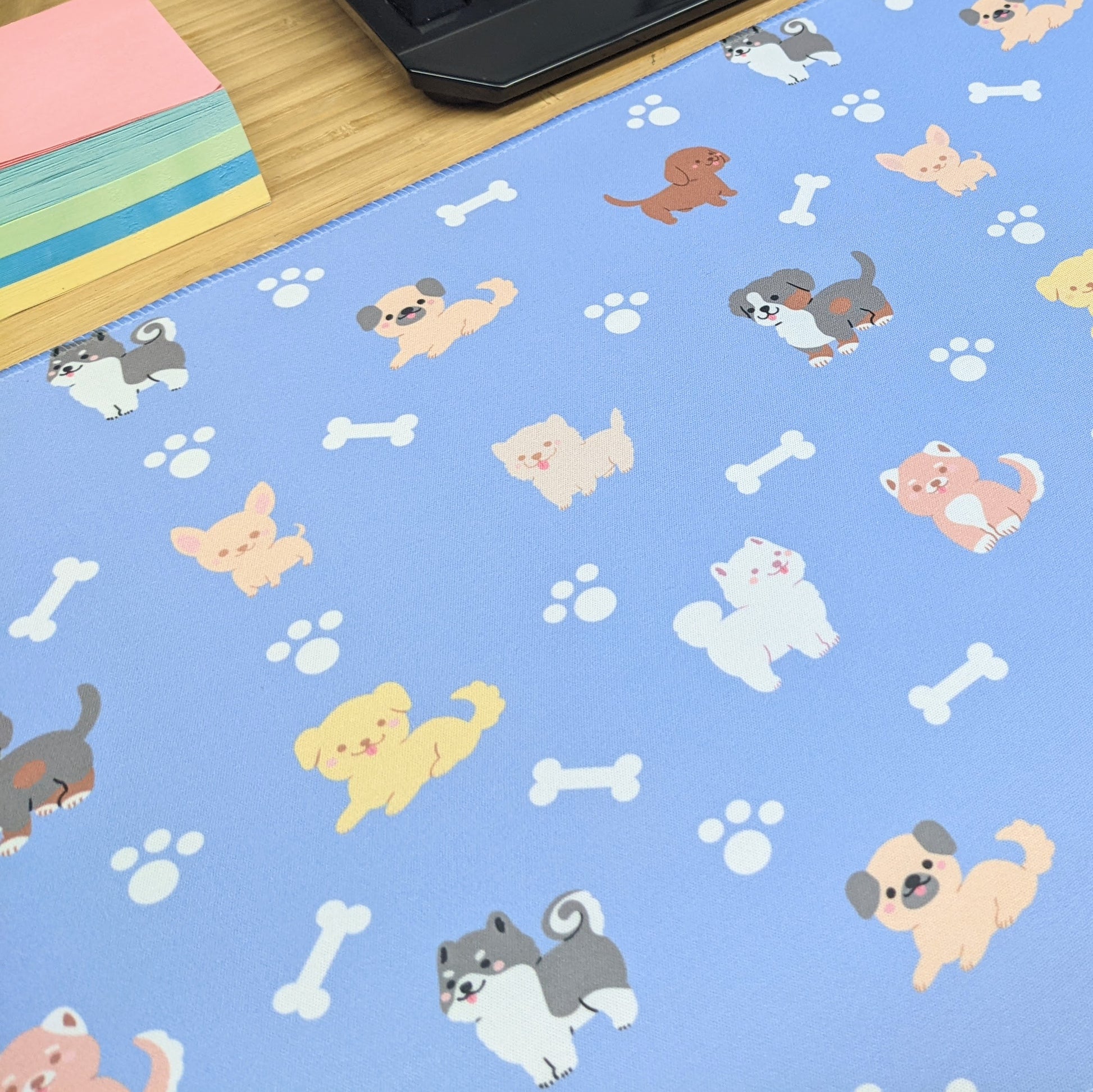 Blue Puppy Dog Paw Print Gamer Desk Mat